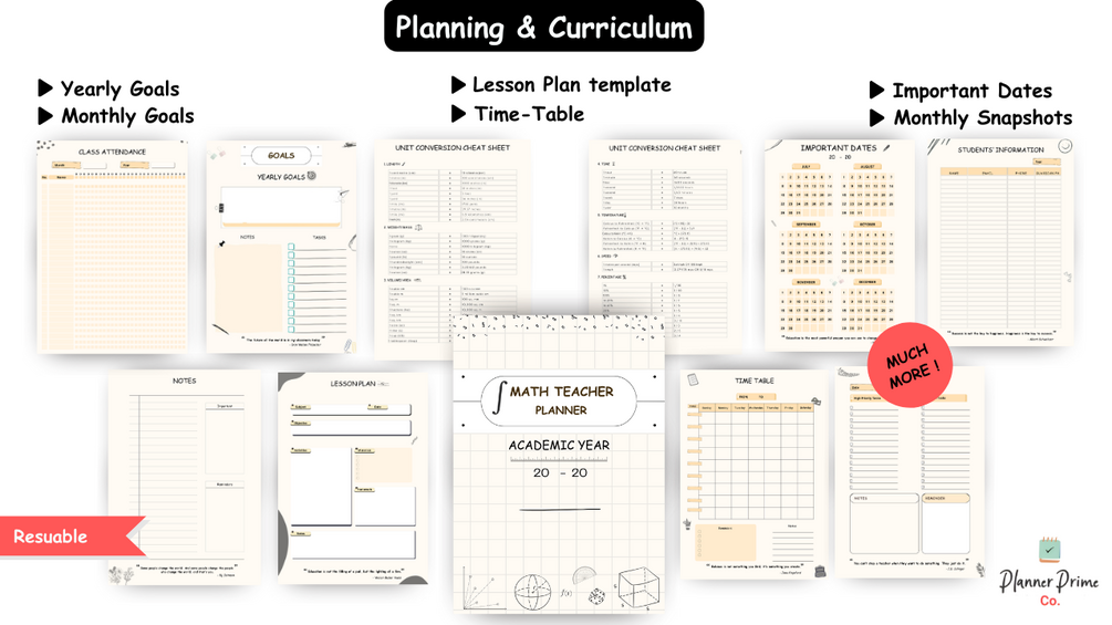 Undated 35-page math teacher planner—printable PDF with graph paper, unit conversions, timetable, and quotes. Designed by teachers, for teachers!